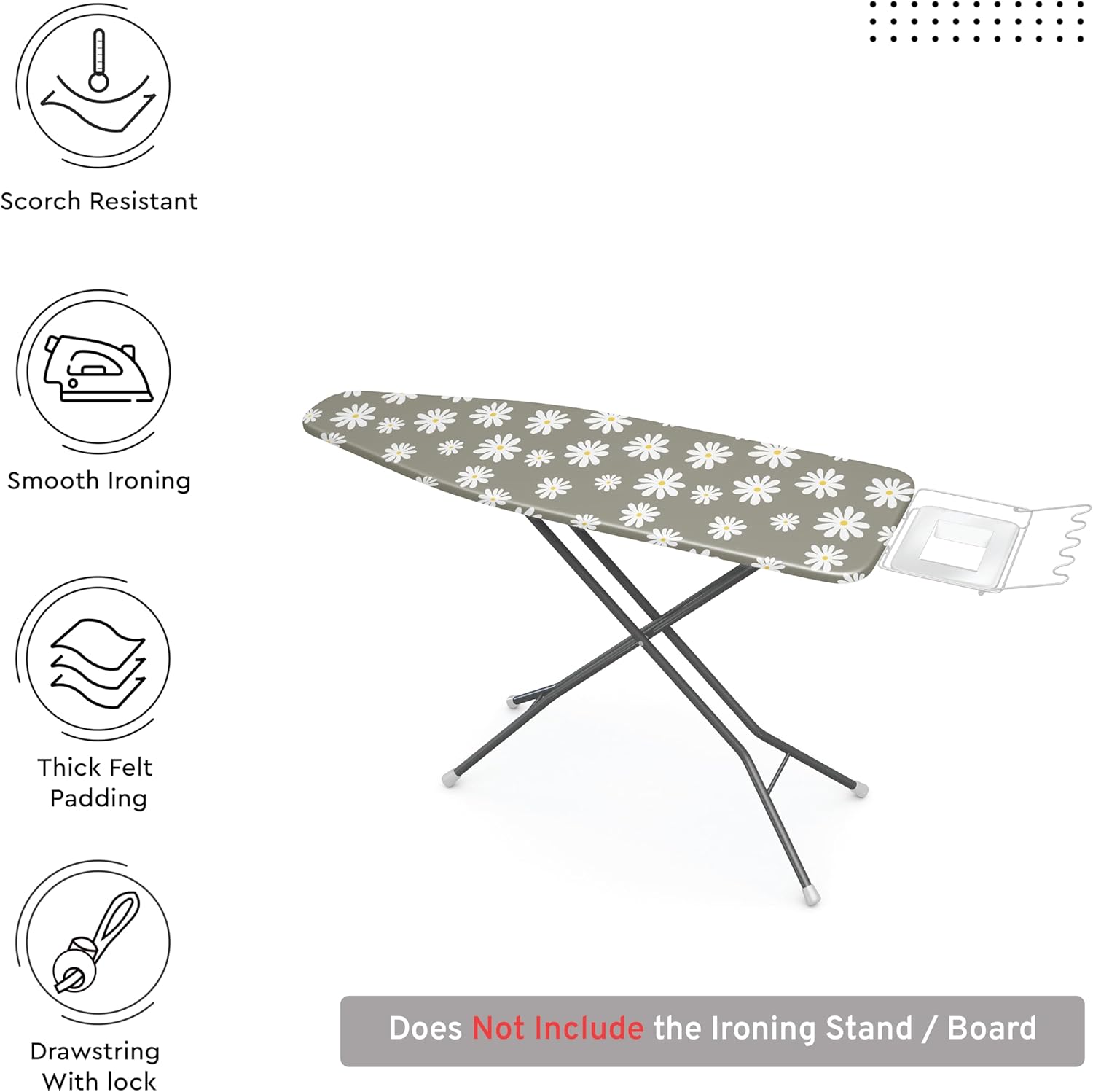 Encasa XO Ironing Board Cover and Pad 54"x15" - Thick 3mm Felt Padding, Drawstring Tightening & Lock, Easy Fit, Scorch & Stain Resistant, Fits Standard Large Ironing Board - Daisy Grey