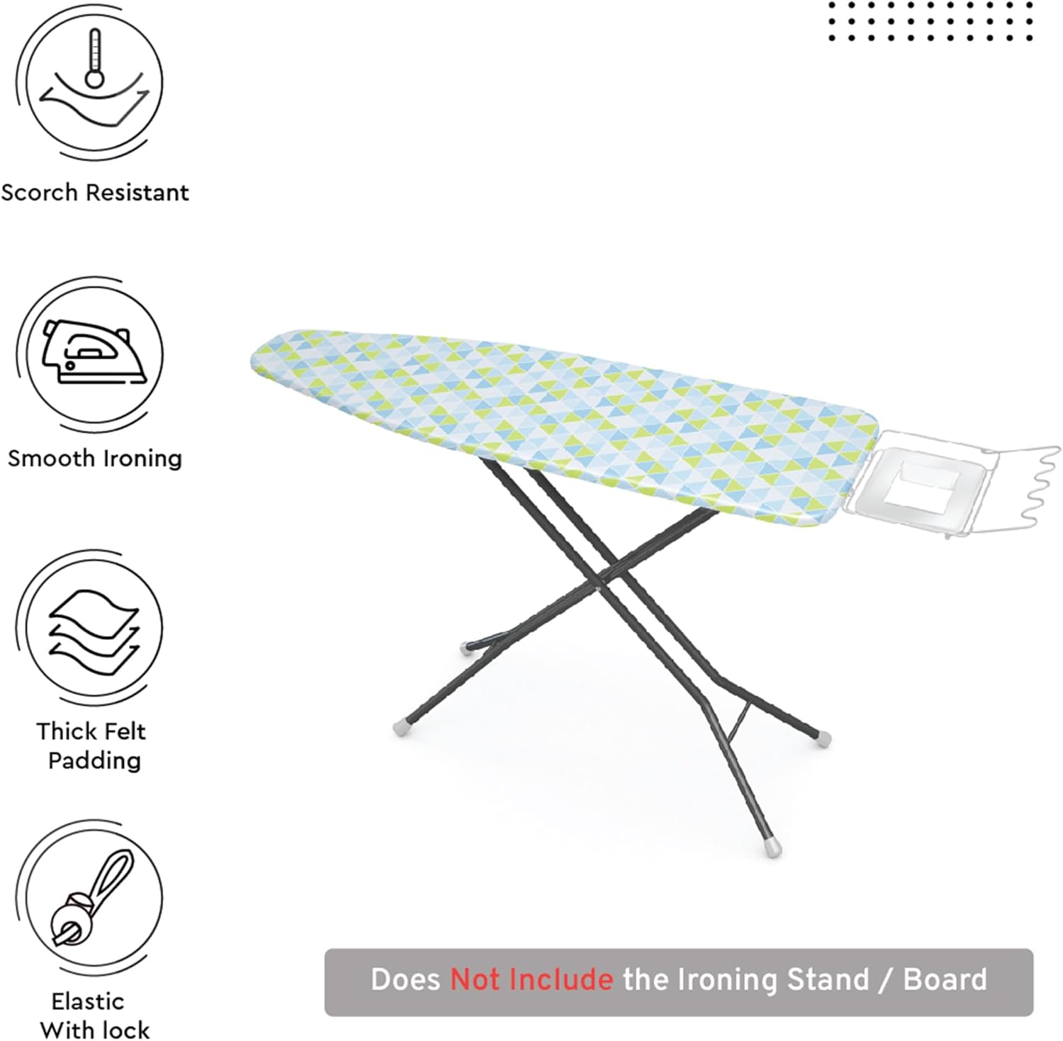 - SAFE, NO-FADE FABRIC, QUALITY MATERIALS: Made with cotton fabric with strong stitching, this ironing board cover can handle everyday ironing without wearing thin. Enjoy peace of mind with colorfast dyes, this cover won’t bleed or fade onto your clothes, keeping garments safe and your ironing space looking sharp. Easy-care washable (cold water, air dry) ensures long-lasting shape, freshness, and reliable use for a long time.
