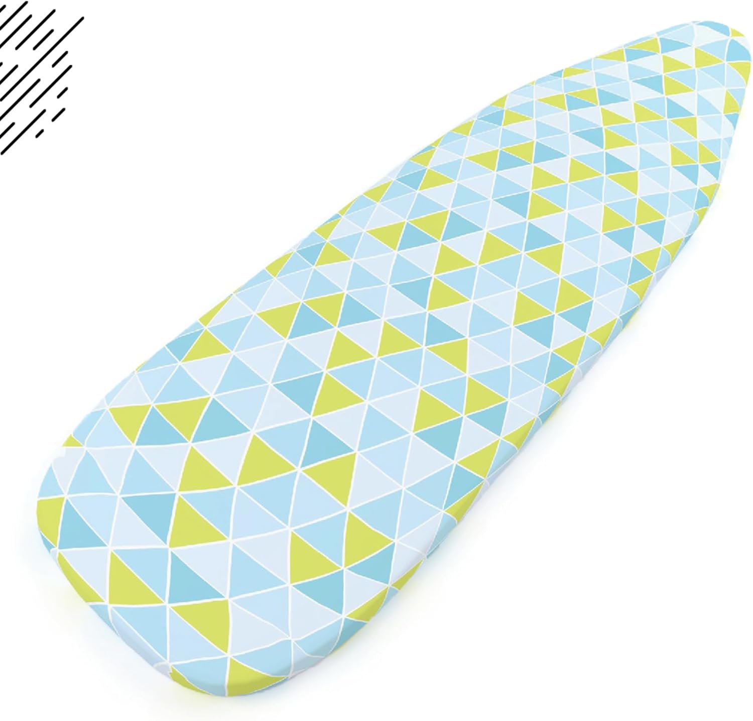 Encasa XO Ironing Board Cover and Pad - Thick 4mm Felt, Heat & Scorch-Resistant, Fits Standard Large Boards 54"x15", Elastic Bungee Cord Tightening, Easy Fit, Stain-Safe Dye, Triangles Aqua