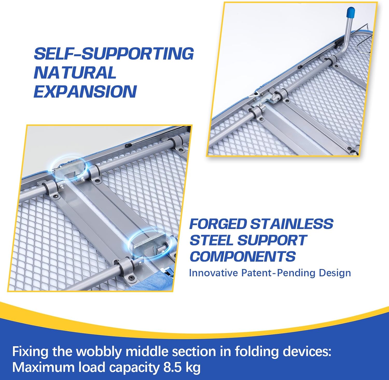 - 【Forged Stainless Steel Supports】The table top ironing board made reinforced stainless steel frame provides unmatched stability (18 lbs max load) and durability. At 5.2 lbs (35% heavier than similar products), it’s built to last.
