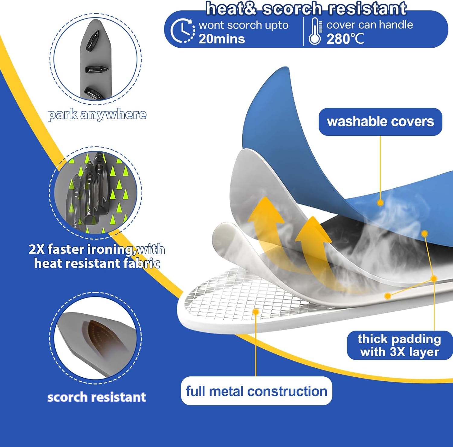 - 【Steam & Electric Iron Friendly】The tabletop ironing board has premium cotton cover and padding are gentle on all fabrics, including delicate garments. No marks, no damage—just a flawless, wrinkle-free finish every time.